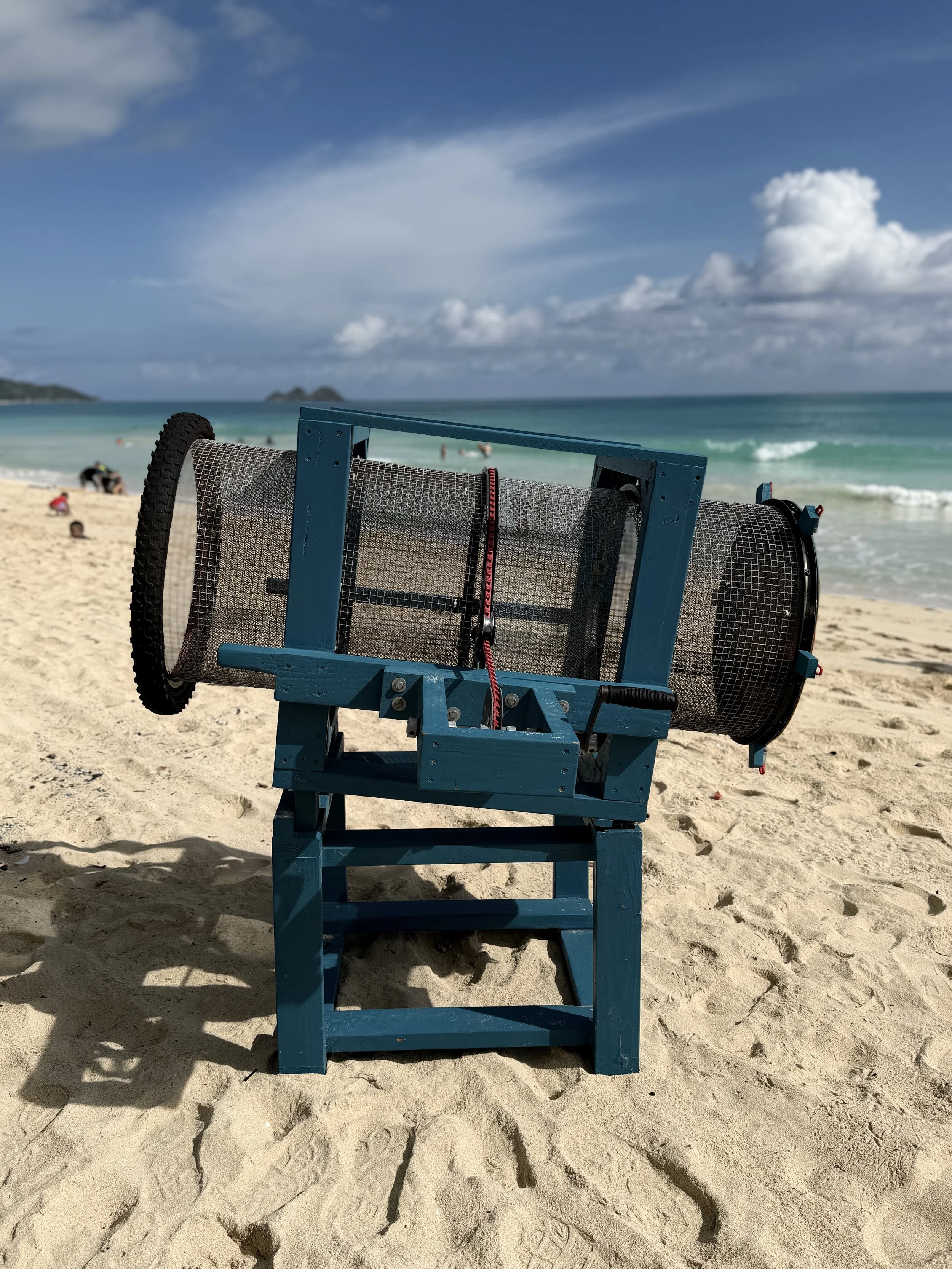 Our updated Huli Sifter was sanded and painted to prevent splinters, and safety measures were implemented in both openings of the tube.